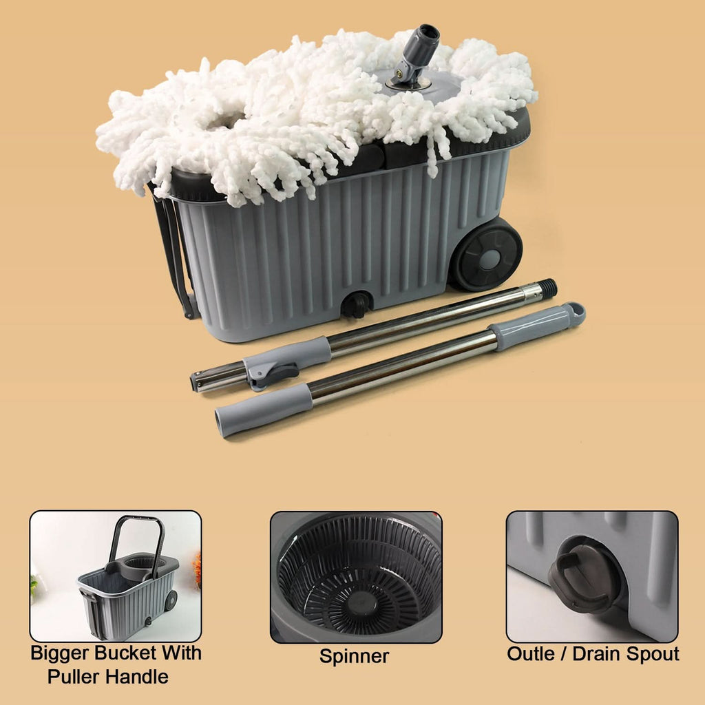 Apex Magic Spin Mop Cleaning Set with Dual Chamber Bucket & Wheels – 1 Set With 1 Extra Refil