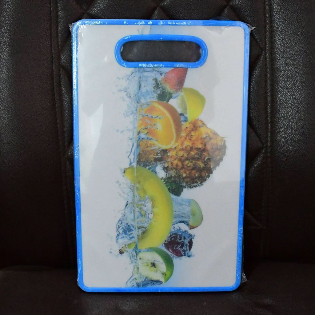 This large rectangular cutting board offers a perfect blend of style and practicality, featuring a vibrant fruit splash print and a sturdy blue-edged frame. Designed for everyday kitchen use, it provides ample space for chopping vegetables, fruits, meats, and more. The built-in handle makes it easy to carry, hang, or store, while its smooth yet durable surface ensures safe food preparation without dulling knives. Easy to clean and hygienic, this cutting board is an ideal choice for modern kitchens.