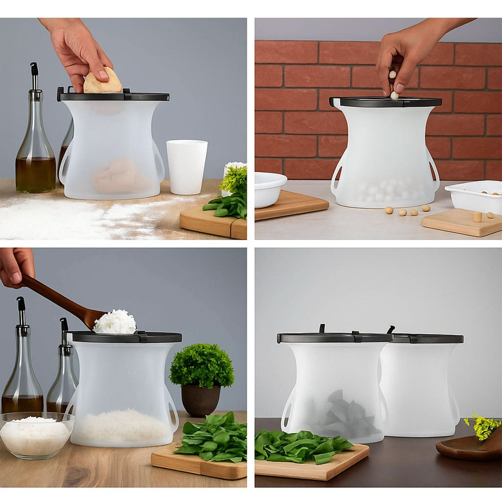 - Food grade material Reusable silicone Seal Bag Made of food-grade silicone and BPA free or any poisonous chemicals, tasteless. These food bags are foldable and store at home or easy to take camping or on a trip. Just put it in the dishwasher and wash it.