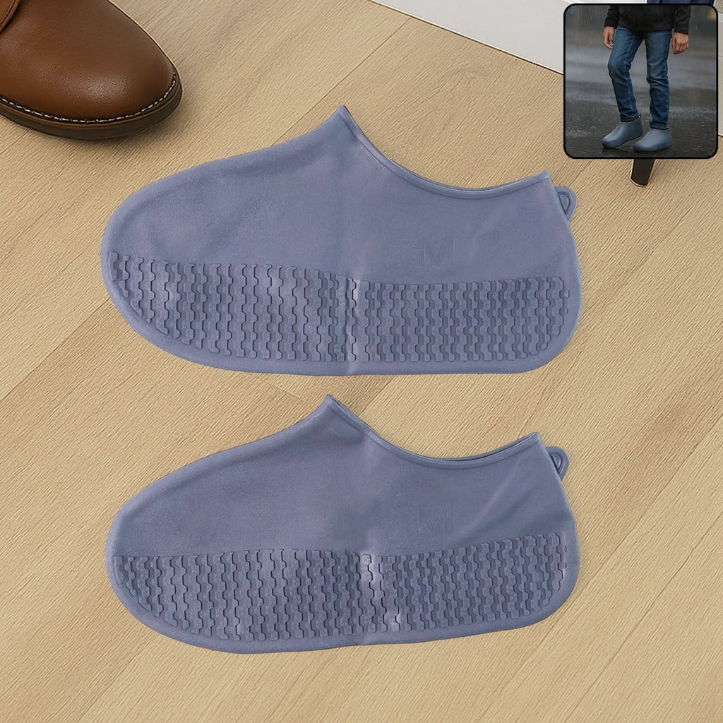 Grey Non-Slip Silicone Rain Reusable Anti skid Waterproof Fordable Boot Shoe Cover (1 Pair)